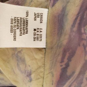HAND PAINTED IN  PASTEL BLUE,  CREAM, WHITE, BEIGE, IVORY, TAN, PURPLE.  OPEN FRONT WHIP STITCH DETAIL.