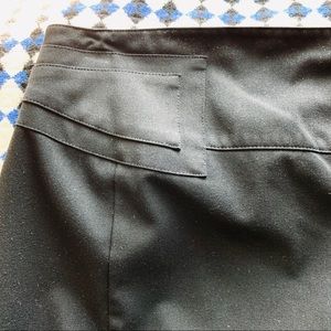 Curve-flattering pencil skirt from Express. A classic in black with geometric details at the front and back. No rips, tears or stains, light pulling throughout.
