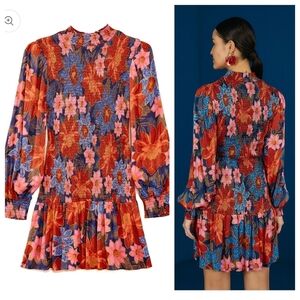 FARM RIO Garden Navy Smocked Blouson-Sleeve Mini Dress Size Med