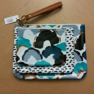 Super cute set of 3 new Fossil Pouches in "Blue Floral". Brand new! Black, navy, teal, gray, white colors. Gold hardware. Pattern is "Blue Floral" and complements so many handbag/luggage colors. MSRP $60. Message me with questions! :)
