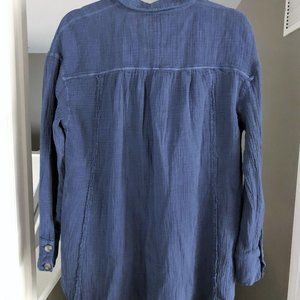 Slate Blue "All About The Feels" textured cotton button down top in a slouchy, oversized silhouette.