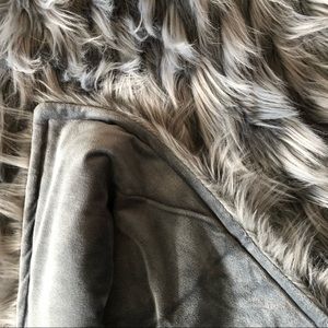 Soft, warm, luxe, faux suede (velour, velvety) backing. Draped over an arm chair, sofa, ottoman, or bed. Adds a lot of elegance. I have two and only need one. Not used.