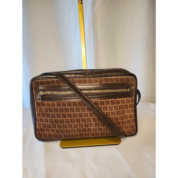 SOLD Fendi Suede and Leather Zucchino FF Logo Crossbody Bag Brown Made in Italy