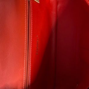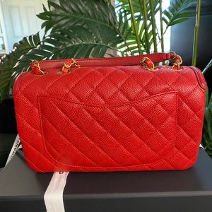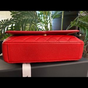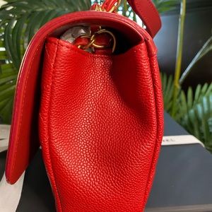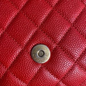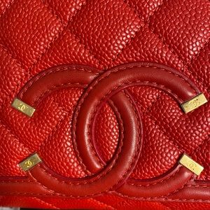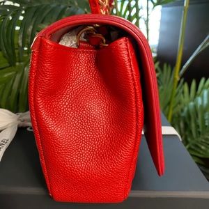 This is the Chanel filigree Mm in caviar leather and color red. In excellent condition, no wear, hardware stickers still intact. Comes full set- box, dustbag, ribbon, camellia. Sold out and hard to find.