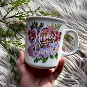 Floral "Hungover" Coffee Mug. Great preloved condition! This mugs gives me all the Urban Outfitters vibes.