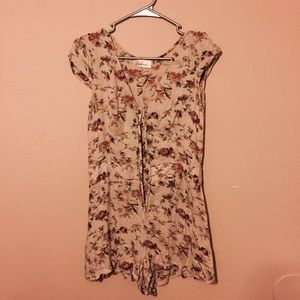Soft cream romper with a floral pattern and gold buttons. Lightly worn.