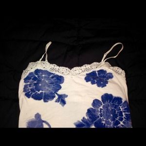 White spaghetti strap tank with bright blue floral pattern. Lace detail on neckline. Great condition! 👍