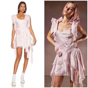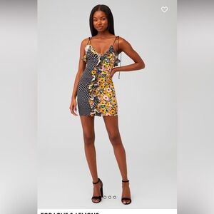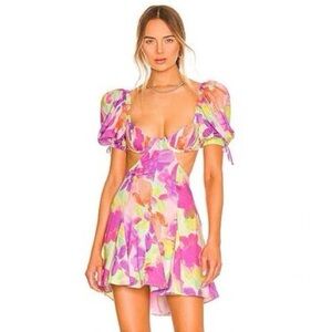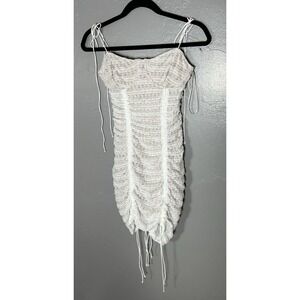 Super soft Lulu jersey dress by For Love & Lemons. Mesh detailing throughout with zip closure at back. The white version of this dress was worn by Kylie Jenner. Bust is 31", waist is 28", hip 37" and length is 32.5". EUC with no rips, stains or tears.