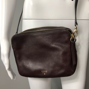 Medium sized Fossil Brown Maroon Leather Messenger . Perfect Condition!