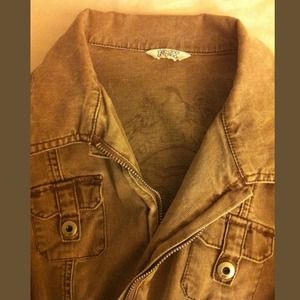 FOX military style jacket tan/grey color. runs small in size. this is a Large. In great condition! :)