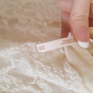 @handshocghy6689 Hi I am so sorry but I do not have cell phone service so I cannot text. There are no flaws and it is in good condition the metal Freepeople label is rubbed down a little bit from wear but the lace has no holes and is very soft and there are no stains.
