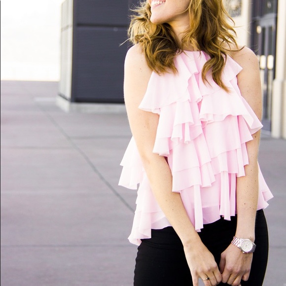 SOLD - French Connection Pink Ruffle Top