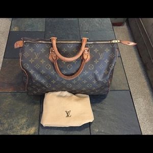L13.7β x D7β x H9β Approx. 2β longer than a LV Speedy 30. Brass polished with Blue Magic to shine & vachetta & monogram canvas conditioned with Cadillac to maintain supple flexibility. No flaws to canvas, water marks & slight lines on handle. Please see pictures. Authenticity 100% guaranteed; please no low offers, thank you π