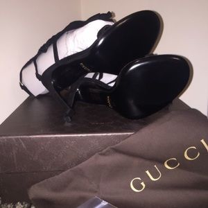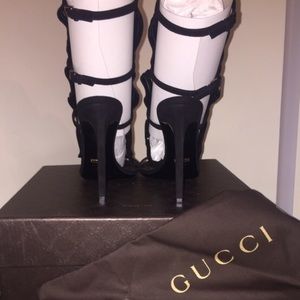 Authentic GUCCI Fringe Sandals. Brand new with box; tried on only at home; Suede upper; Adjustable straps 4.3" heel; Open toe with Leather lining and sole;
