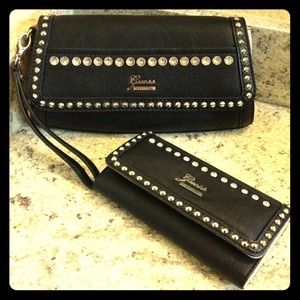 🚫SOLD GUESS rhinestone studded clutch and wallet