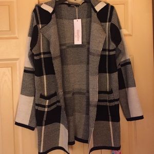 80 Nylon/ 20 Cotton.. ♦️BRAND NEW WITH TAGS♦️ Black and White Check Please Coat, very soft and Super Cute! Has one button in front and pockets on both sides in front. Size small but fits more like a medium. Comes right below backside area.. Ordered from high end Boutique online. Love it, but just doesn't fit. This is a nice warm coat but also lightweight! Can be worn during just cool or even very cold weather! Has a super soft sweater type feel! ◼️◻️Make an offer if interested! ◻️◼️