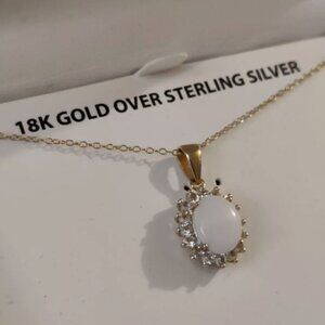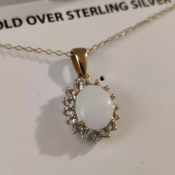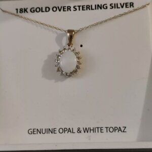 SOLD Genuine Opal White Topaz Necklace Pendant. Sterling Silver 18K Gold