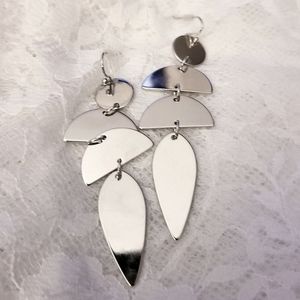 "SOLD" Geometric Silver Tone Dangle Earrings