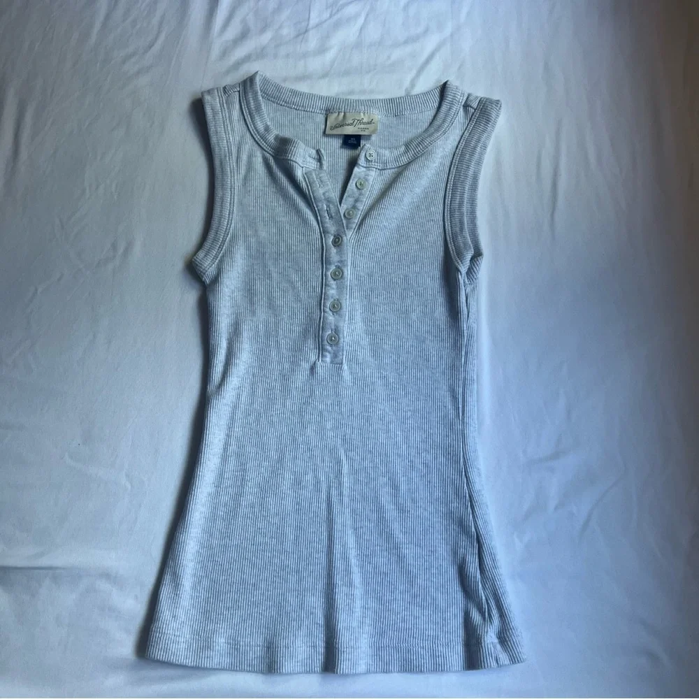 Chic ribbed tank top with button detail. Soft and stylish for any occasion.