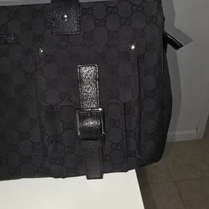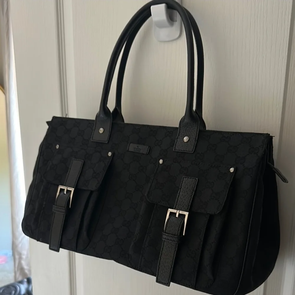 Authentic Elegant GUCCI shoulder bag. Features dual front pockets. Sleek black design. Perfect "Mom Bag" for the mommy GUCCI lovers 😍🥰