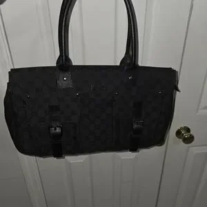 🚫SOLD🚫 | Gucci | Black Canvas GG Shoulder Tote W/ Leather Detail