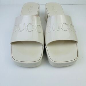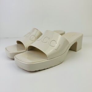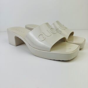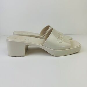 SOLD Gucci Double GG Logo Rubber Platform Block Heel Sandals Ivory Size EU39 US9