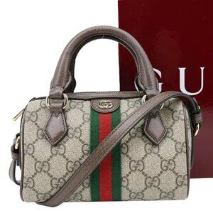 Gucci Ophidia Mini GG Supreme Canvas Boston Shoulder Bag Beige 838478