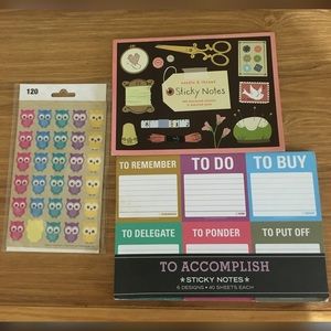 Includes extra sticky notes and stickers included (see last pic) will throw in surprises I find too!