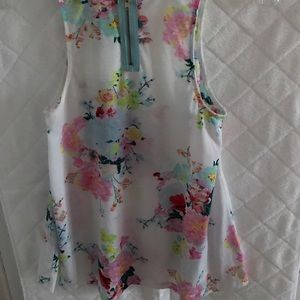 H&M Floral Tank Size 2 (XS) White with multi color Floral pattern tank. Light blue zipper in back.