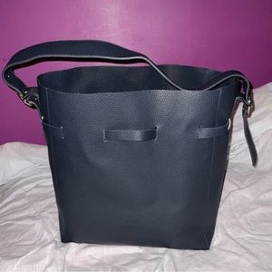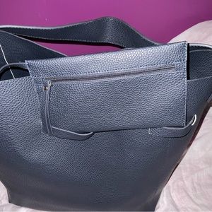 I’ve never worn this bag out but would place items inside for storage and just kept it in my closet. There are some slight marks that aren’t too noticeable but refer to all the pictures. This is super spacious and sturdy. It feels like leather but im not sure if it’s real leather or faux leather.