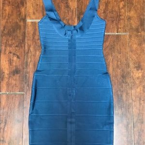Scoop neck design authentic Herve Leger bandage dress in size XXS. Will fit up to street size Small (it's very stretchy!) Perfect used condition, color is called "china blue" and is a very beautiful teal blue color.
