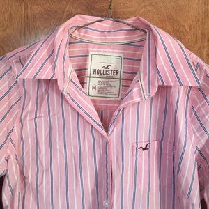 *SOLD* Hollister Pink with Blue Stripe Button Down