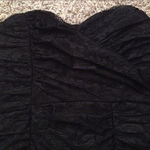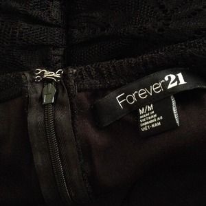 Size med . From f21 . Worn a couple times but in great condition ! Such a cute strapless party dress . Ruffly lace design with a great body fit !! Zip up in the back with a pin tie π Super cute π
