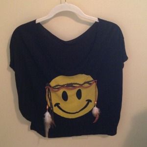 Loose fit! Black. Size small. 100% rayon material. Headband on the smilie face has real feathers and beads and is made of faux leather. Super cute with jeans and boots!