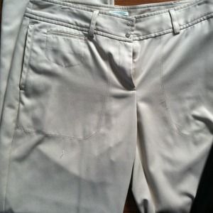 Black and khaki pants. Golf line, have cargo pockets. Missing one of the buttons on khaki pair. Comfy but dressy at the same time