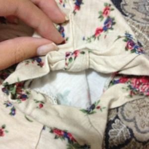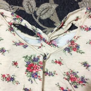 Adorable beige floral cropped tee with twisted detail on the back and bow-like detail on sleeves. Tiny pocket on left breast. Super adorable but too small on me.