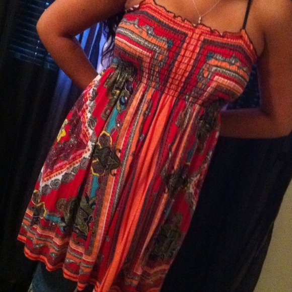 Multi colored summer top. Could also be worn as a dress. Straps are adjustable. Size M/L. Chest is elastic so either size could wear it.