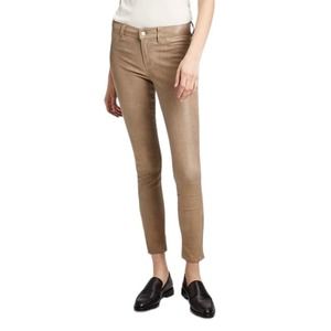 By J Brand. Designed in the U.S.A. A mid-rise skinny pant elevated in buttery soft crinkled stretch lamb leather for a lived-in look and feel. Designed with faux side pockets, back patch pockets and functional side zips, making them easy to slip on and off.