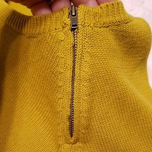 This sweater is nice and roomy, perfect for fall! The working zipper detail on the neckline adds an extra bit of detail to this must have piece! Like new condition!
