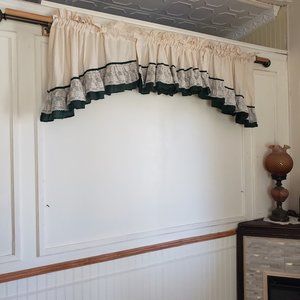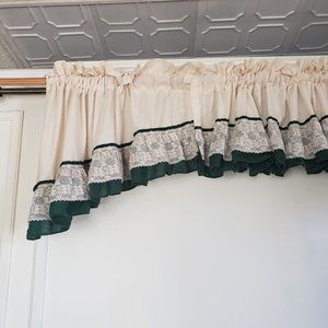 SOLD JC Penney Priscilla Swag 84W x 25L Valance Rod Pocket Cream Green Ruffle