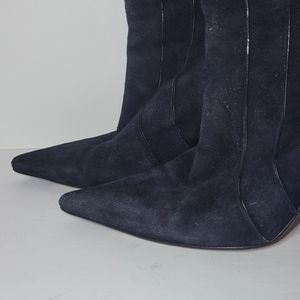 **SOLD** Auth. Jimmy Choo black suede booties, pointed toe, open top with leather lining trim outside. Good condition. Love these! ❤️ Perfect item to use Affirm at checkout!