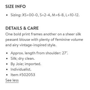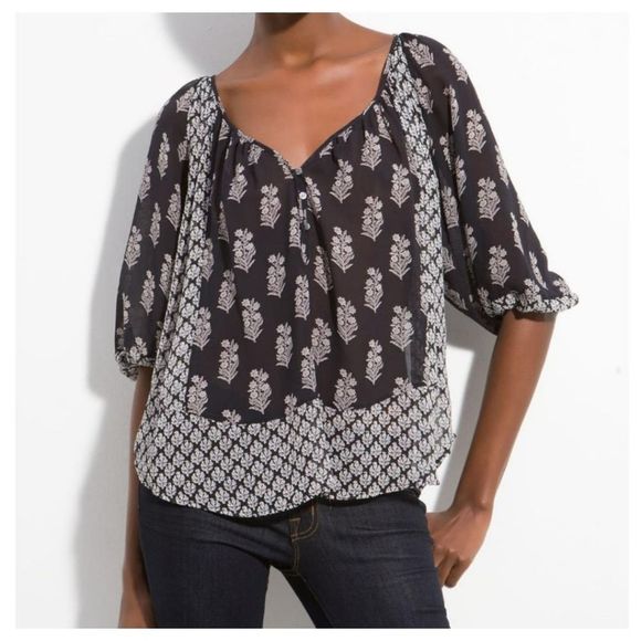 SOLD!! JOIE Corbelle Printed Silk Peasant Blouse