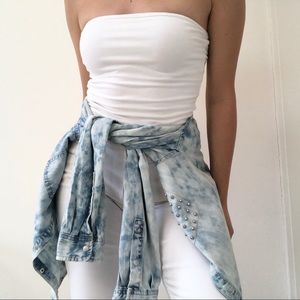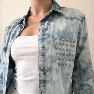 The absolute cutest jean jacket with silver stud detailing. The acid wash on this is perfection!
