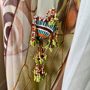 📌 Condition notes: Minor inner collar discoloration (likely from perfume) — not visible when worn. One beaded tie has a loose thread and may benefit from a quick stitch. Overall very good vintage condition.