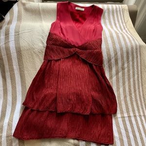 A cocktail dress with a modern ‘20s vibe in rich burgundy silk from Jeffrey Monteiro. Brand new without tags, never worn.