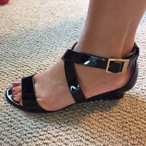 SOLD Jimmy Choo Black Patent Chiara Sandal Wedges
