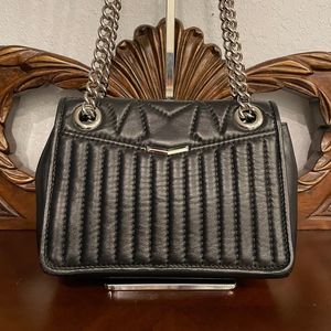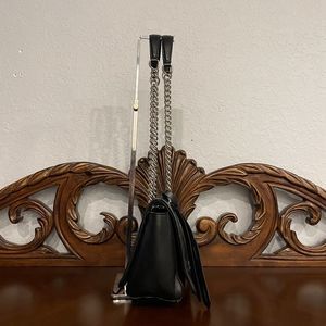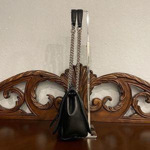 Jimmy Choo Helia shoulder bag in black Nappa leather, embellished with a whimsical star shape pattern embroidery. So adorable! Silver tone hardware. Lock plaque in very good condition with light wear. Barely worn. Lock opens bag to small but roomy enough for phone and few things with one interior zip pocket where holo tag hides.