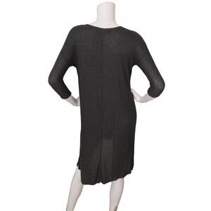 SOLD** Joah Brown Gray Rib Jersey 3/4 Sleeve V-Neck On Point Tunic Dress