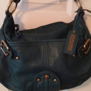 Butter soft, stylish green, leather bag w/ rustic buckles & studs. No stains or marks.