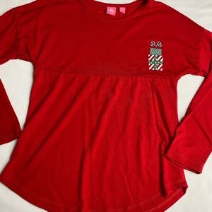 Christmas Jersey shirt adorable says size Large but we wore at size 7 no holes or stains